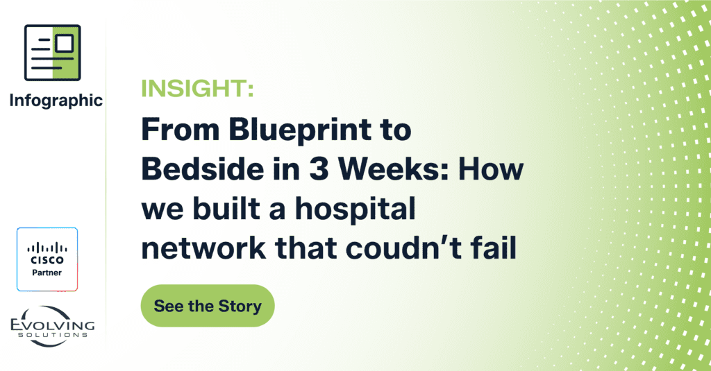 Integrated Health System came to us with a new hospital tower, a compressed timeline, and the need for a network that could support everything from critical patient monitoring and Voice over Wi-Fi (VoWi-Fi) to future AI-driven clinical applications. The stakes were high, and there was no room for error.